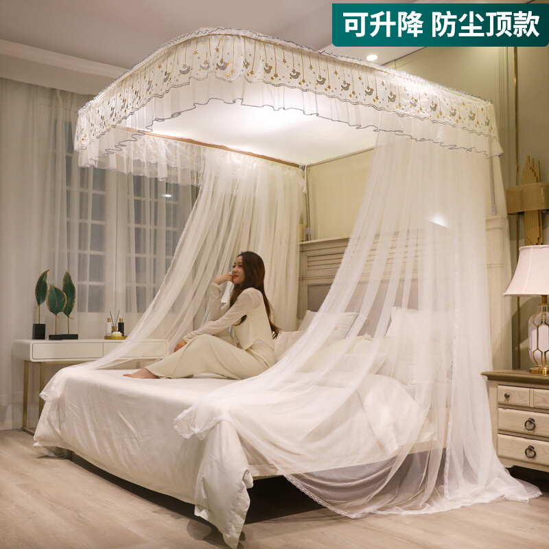 u型蚊帐家用可伸缩宫廷落地式1.5m床新款高级公主风刺绣1.8免打孔