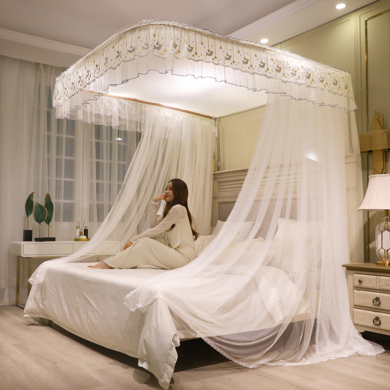 加大空间U型蚊帐易拆洗两柱支架简约家用床帘蚊帐公主风高端法式