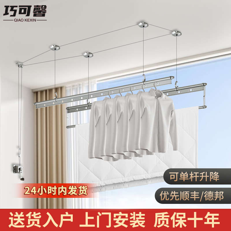 巧可馨升降晾衣架手摇器阳台家用晾衣杆顶装折叠三杆晾衣架凉衣杆