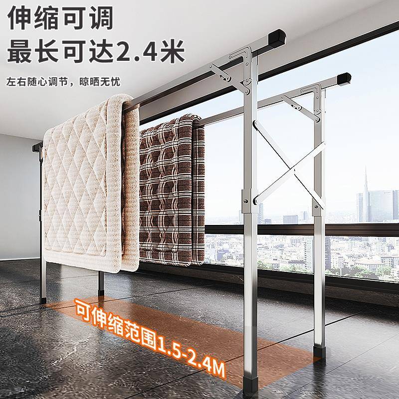不锈钢免安装落地双杆三杆晾衣架可伸H缩阳台室内外晒被架晾晒神