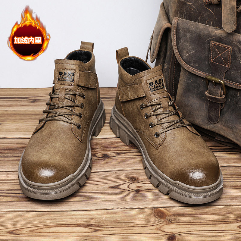 高帮马丁靴男冬季加绒保暖加厚休闲工装皮鞋户外休闲工作劳保棉鞋