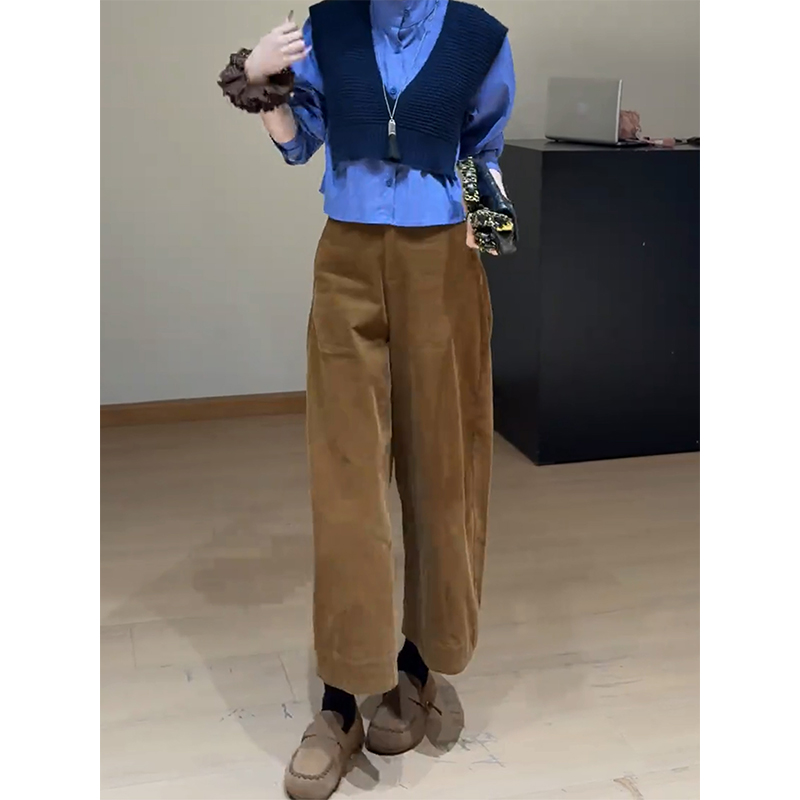 韩版焦糖色灯芯绒九分直筒裤女2025秋季新款宽松百搭高腰显瘦休闲
