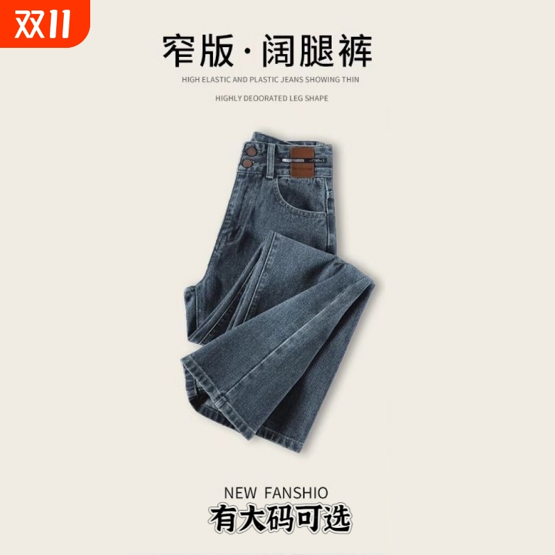 复古蓝高腰阔腿牛仔裤女2025秋冬新款宽松显瘦垂感直筒做旧拖地裤