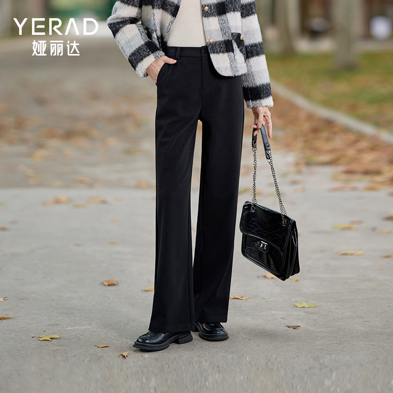 娅丽达加厚直筒裤女冬季仿毛呢裤子2025新款休闲裤时尚女裤阔腿裤