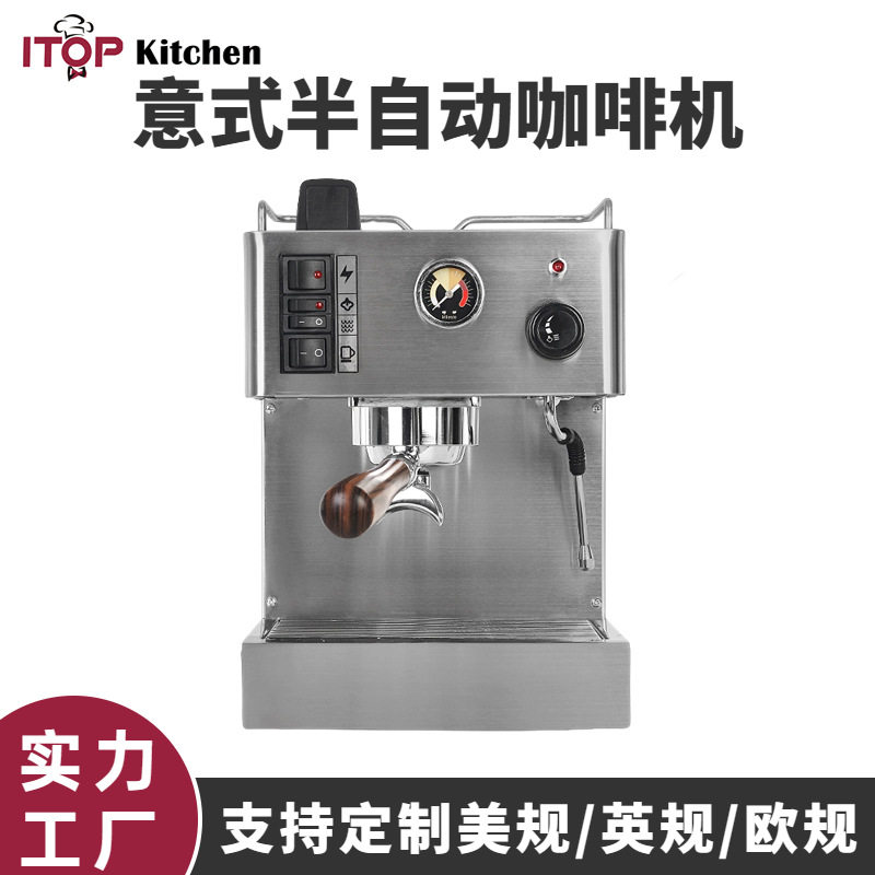 意式半自动浓缩咖啡机 商用不锈钢银色大容量蒸汽锅炉意式咖啡机