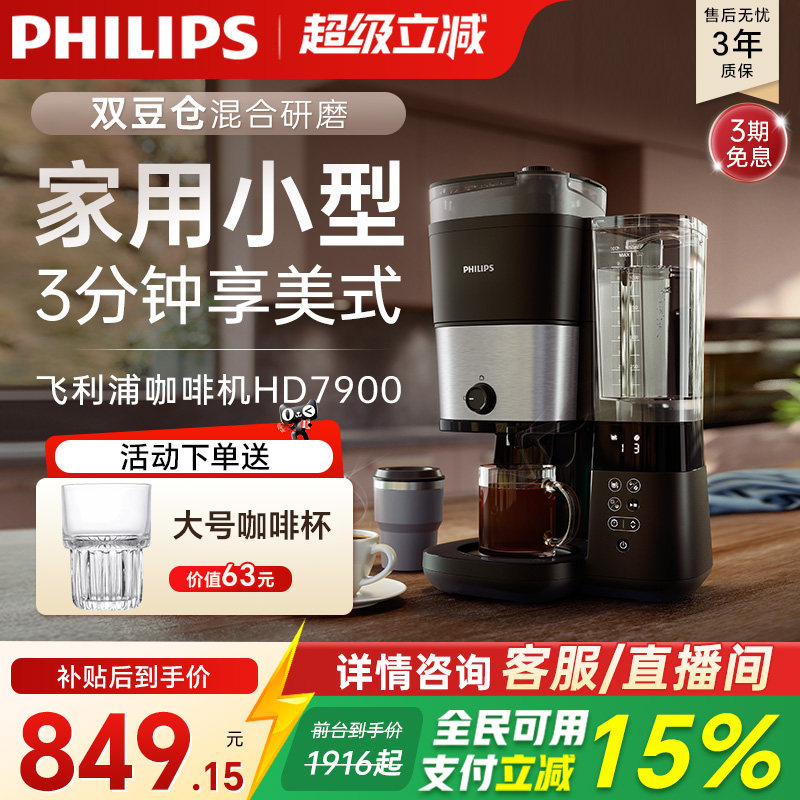 换新补贴飞利浦美式全自动咖啡机家用小型现磨研磨商用一体HD7900