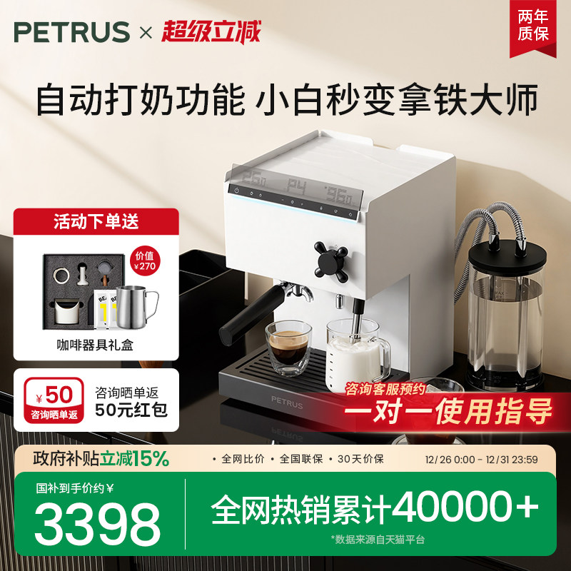 换新补贴柏翠PE3888Pro直白咖啡机小型家用美意式全半自动商用