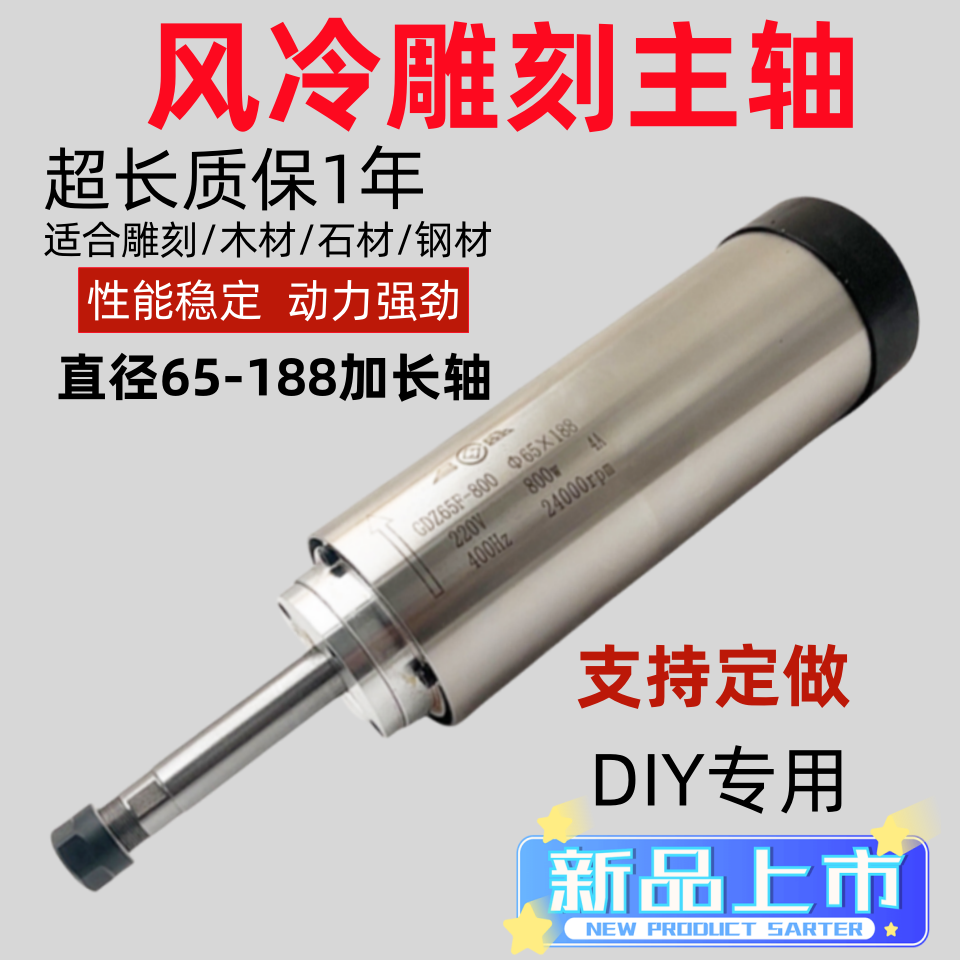 雕刻机主轴电机800W风冷65直径 雕刻机电主轴动力头 风冷加长轴