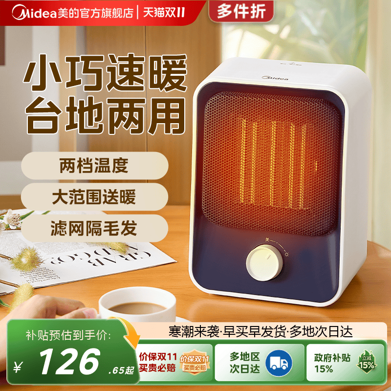 美的取暖器小型暖风机电暖气节能电暖器办公室小太阳冬天神器节能
