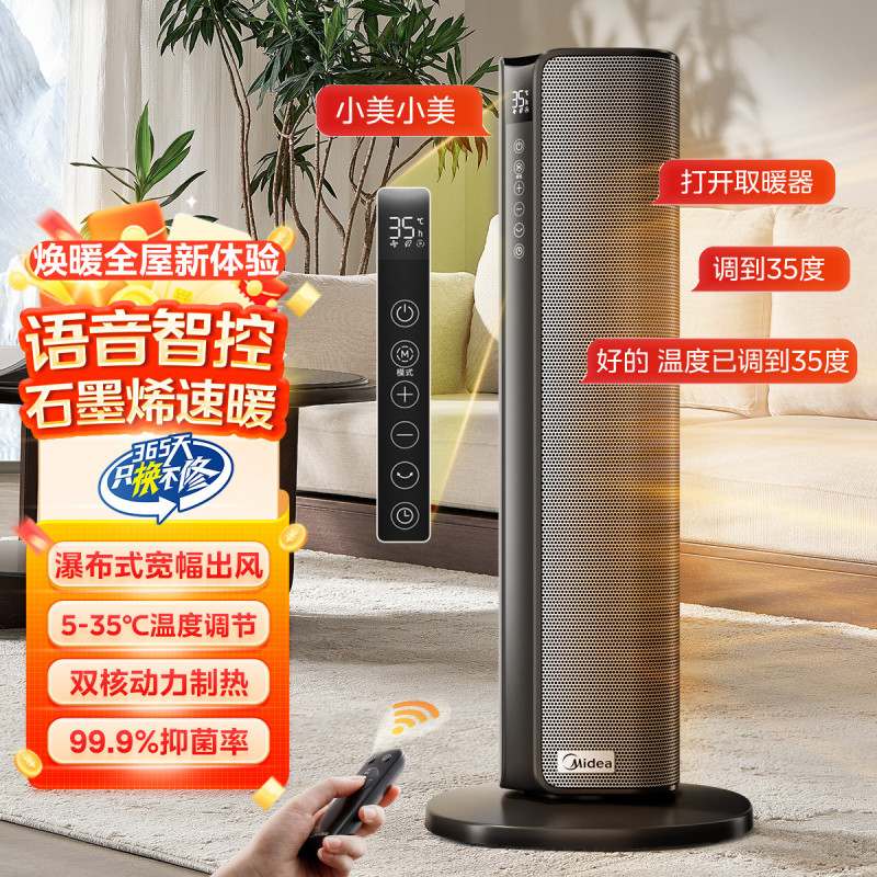 美的石墨烯遥控语音暖风机家用电暖器热风浴室电暖风取暖器20SWK