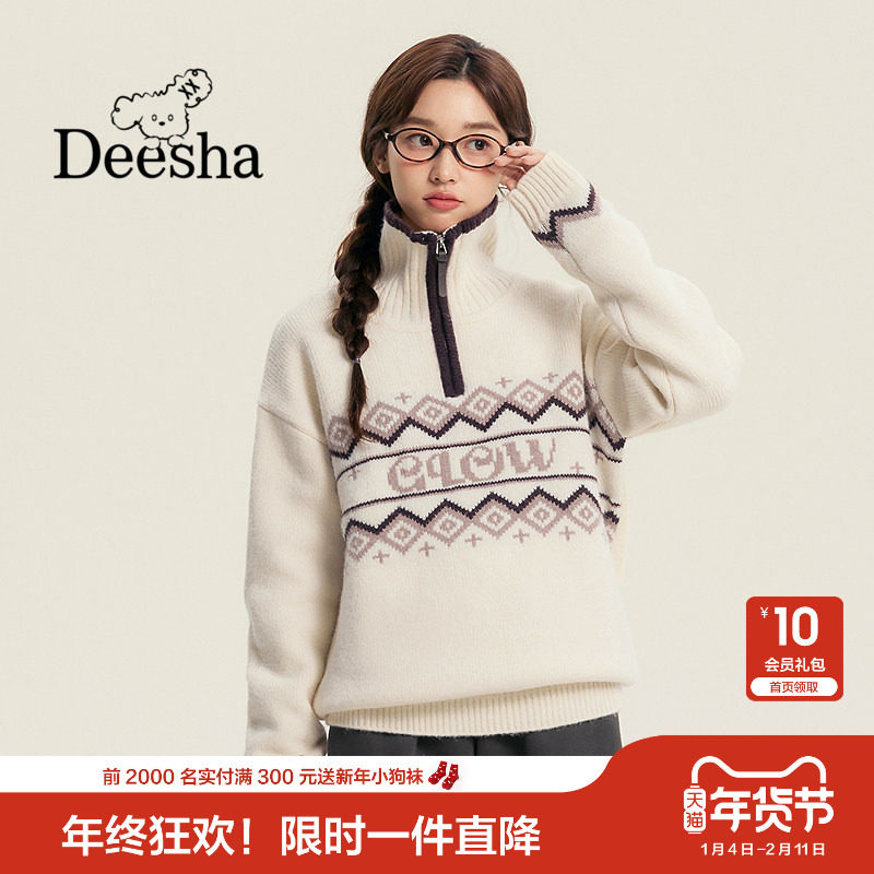 笛莎官方童装女童毛衣冬季新款青少年大童女孩学生立领针织衫上衣