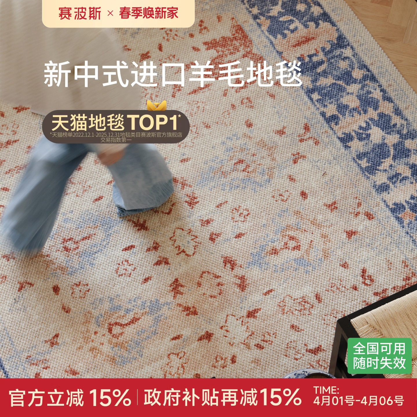 羊毛进口地毯客厅2026新款免洗可擦床边地垫法式复古卧室中古高级