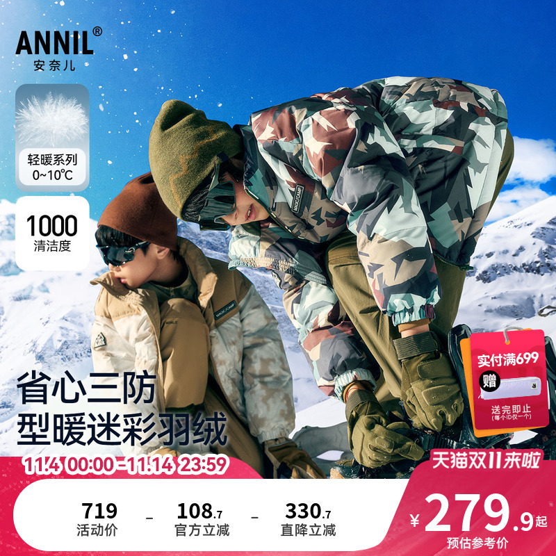 特步童装儿童加厚羽绒服男童保暖外套2025秋冬新款防寒服迷彩冬装