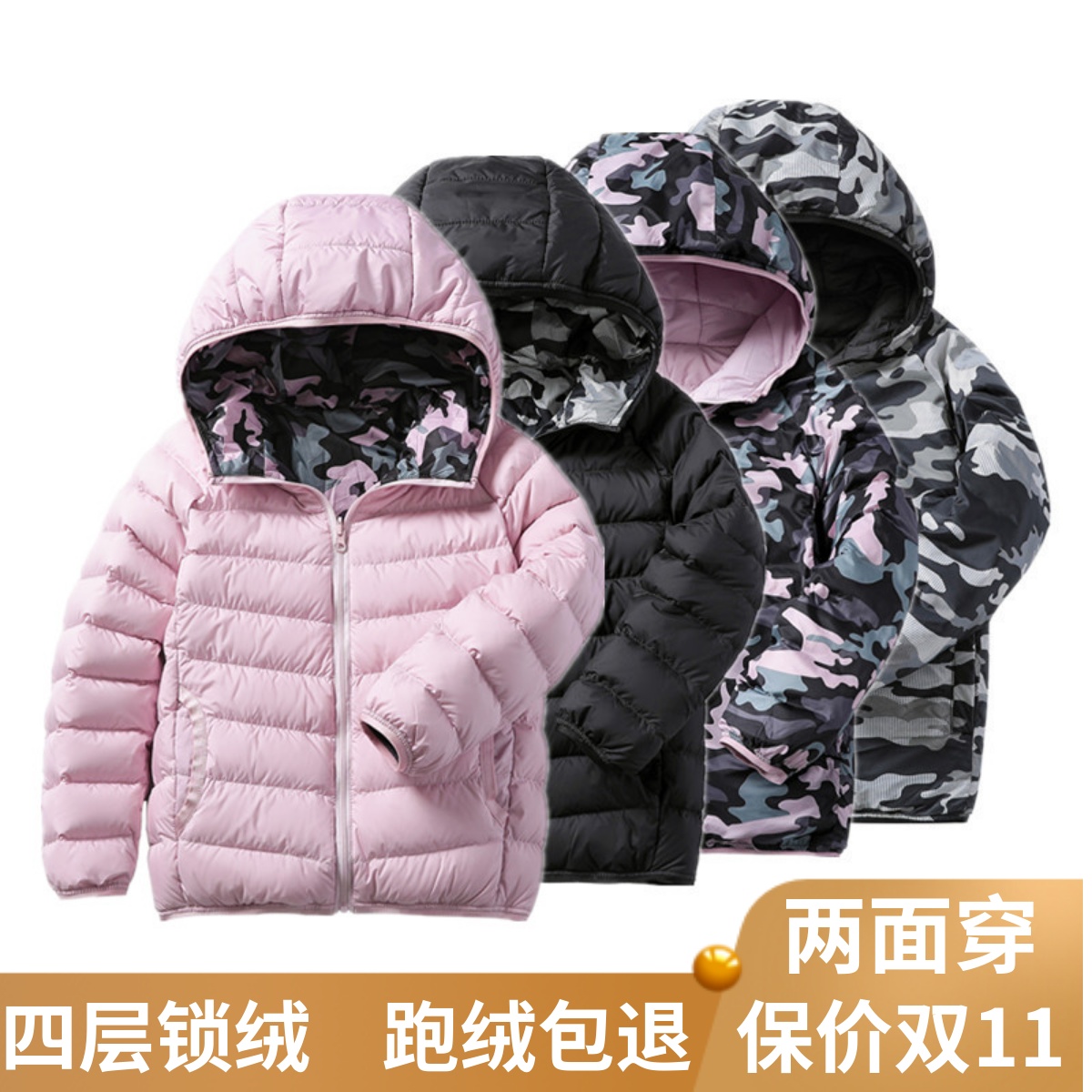 童装女童轻薄款羽绒服外套儿童中大童女孩校服秋冬迷彩排骨两面穿