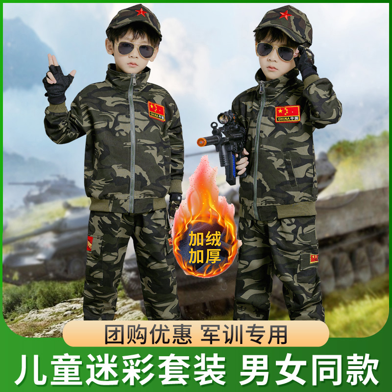 童装迷彩服儿童套装秋冬男童加绒警服外套冬季学生加厚纯棉军训服