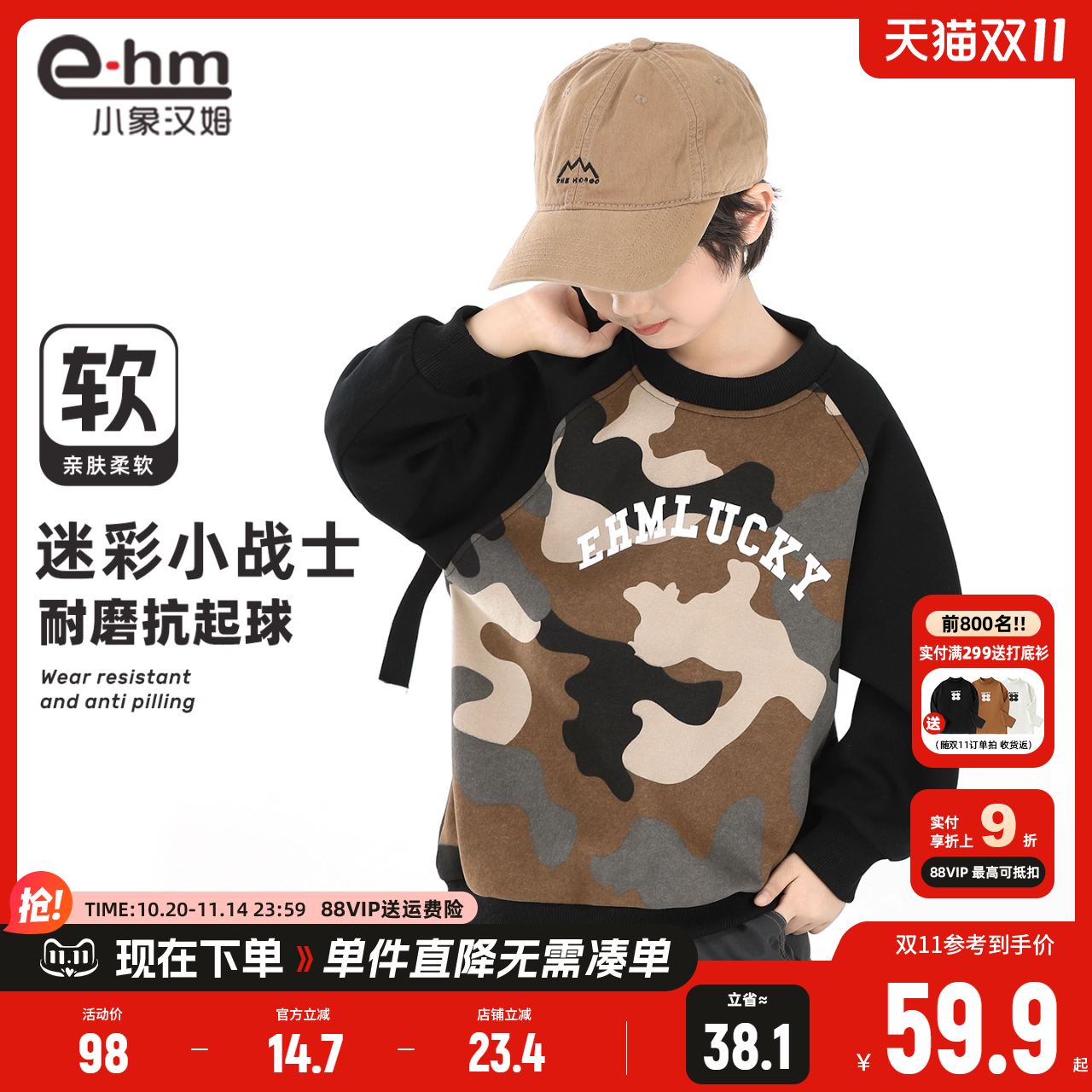 小象汉姆童装男童卫衣迷彩服儿童圆领长袖上衣2025秋装新款洋气潮