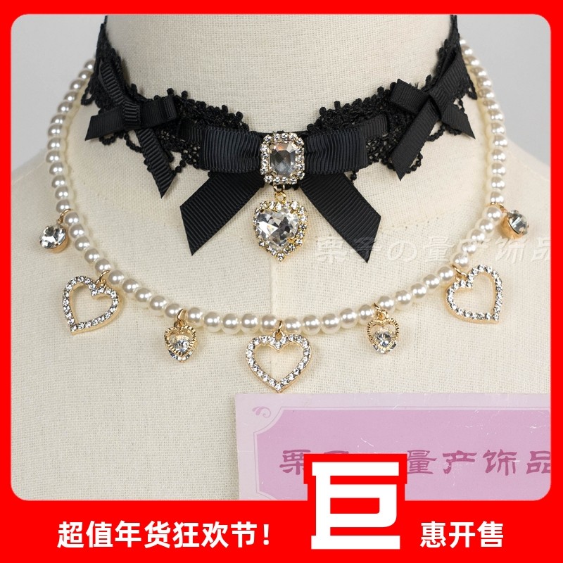 天蕾系量产型双层可拆choker蕾丝abs珍珠爱心项圈lolita颈链项链