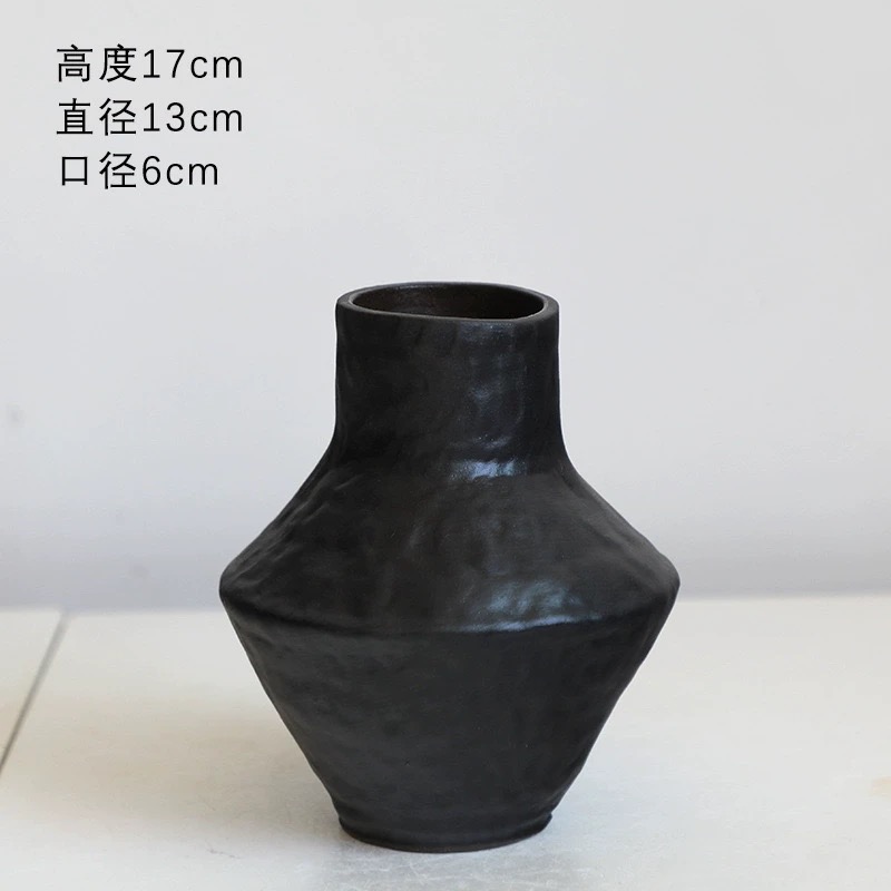 复古花壶瓶老式土陶罐镁泥花盆花器民宿侘寂风黑金刚落地装饰摆件