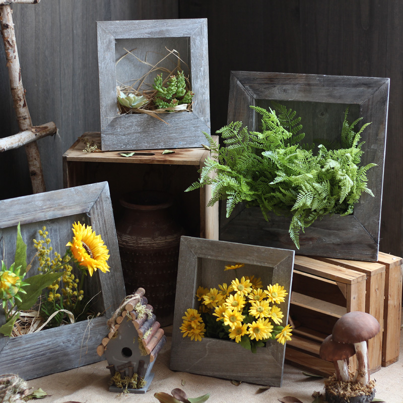复古做旧花框创意花盆花器手工实木花园阳台装饰品ZAKKA杂货摆件