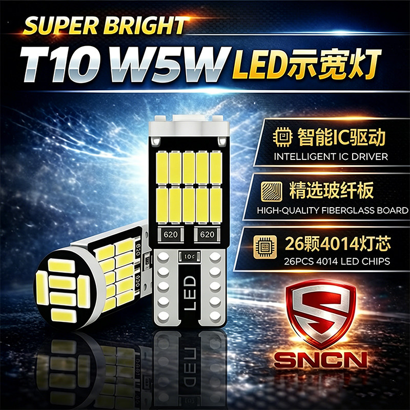T10 LED示宽灯 4014 26灯超亮 汽车日行灯牌照灯后备箱小灯泡通用
