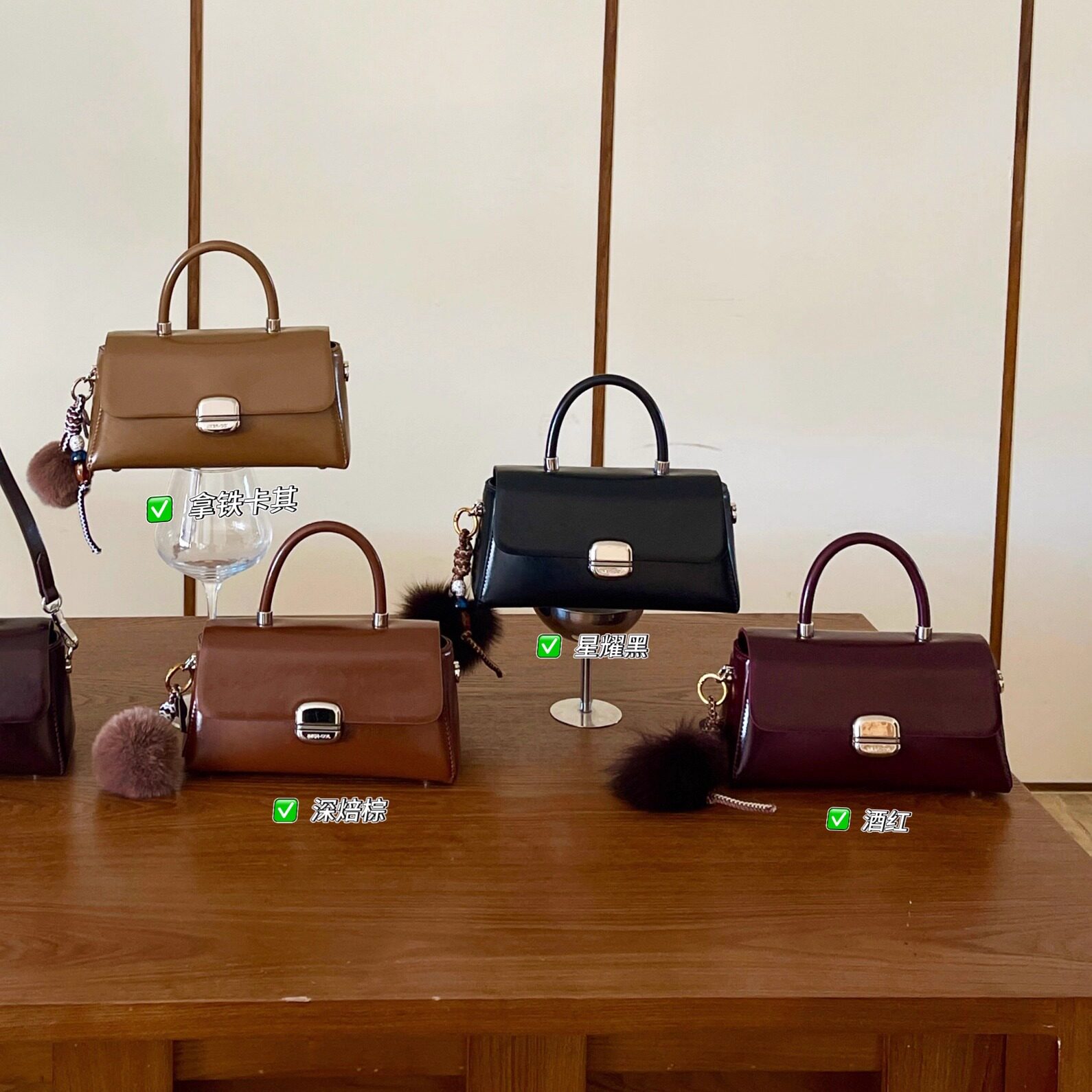 香港品牌女包2025新款时尚洋气手提波士顿真皮斜挎单肩质感小方包