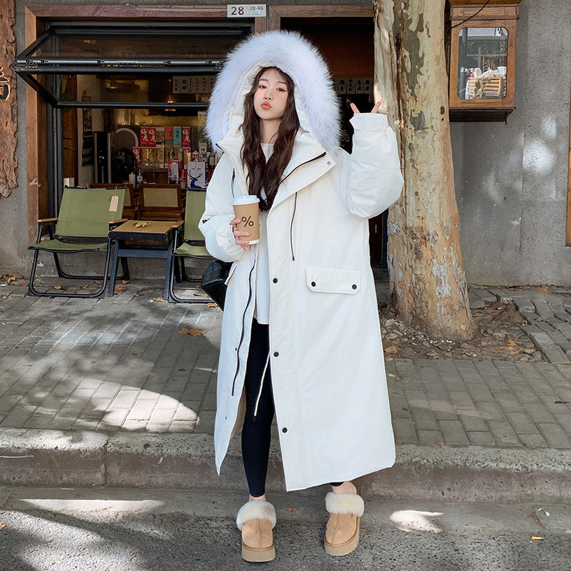 羽绒服女2024新款韩版宽松超大毛领超长款过膝加厚保暖白鸭绒外套