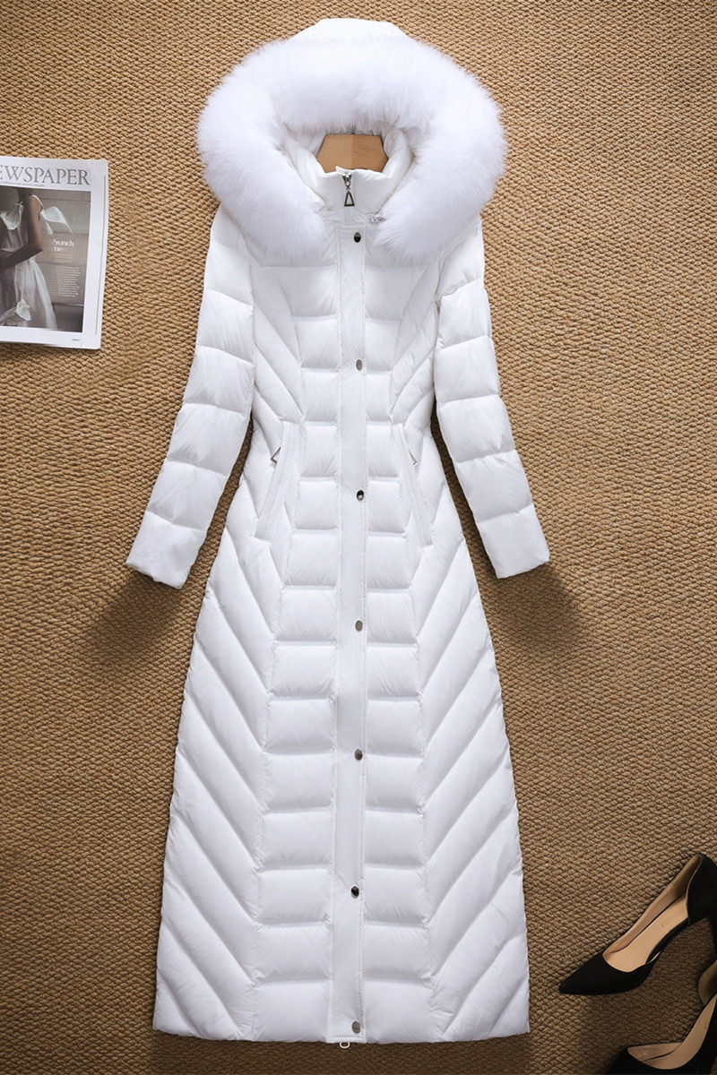 2024冬季新款大毛领加长加厚修身白色超长款羽绒服女长过膝到脚踝