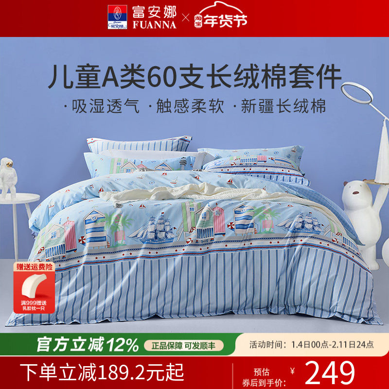 富安娜家纺四件套100纯棉全棉被套床单被罩三件套宿舍床上用品