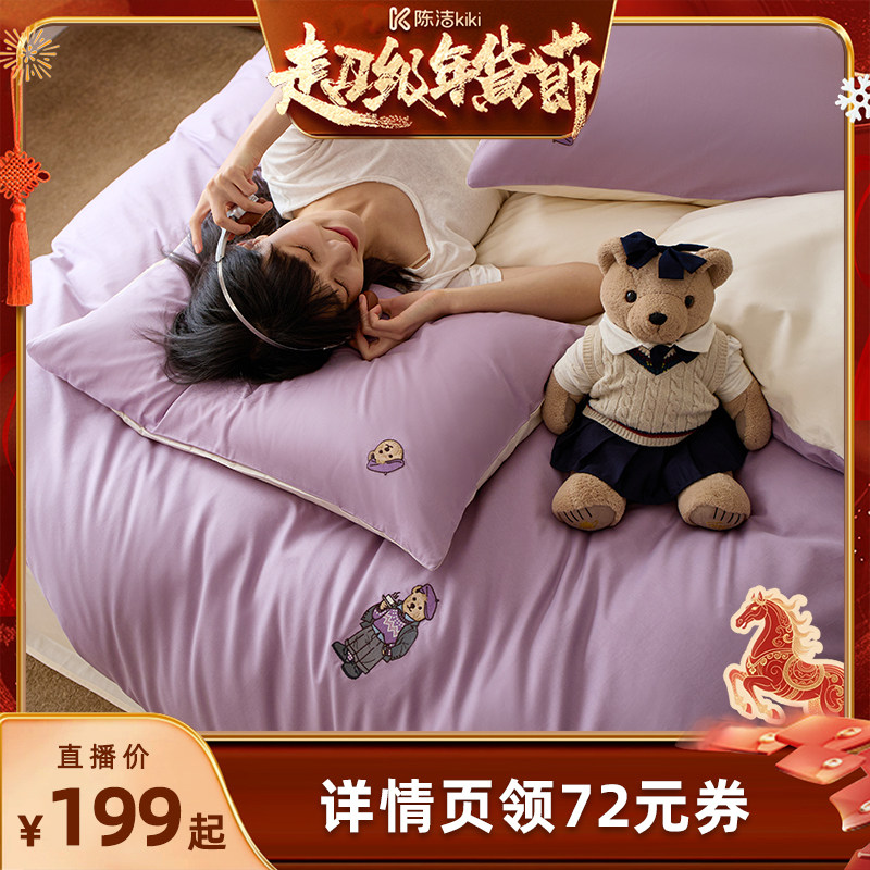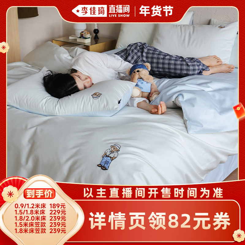 【李佳琦超级年货尾款日】TeenieWeenie刺绣全棉床上用品四件套