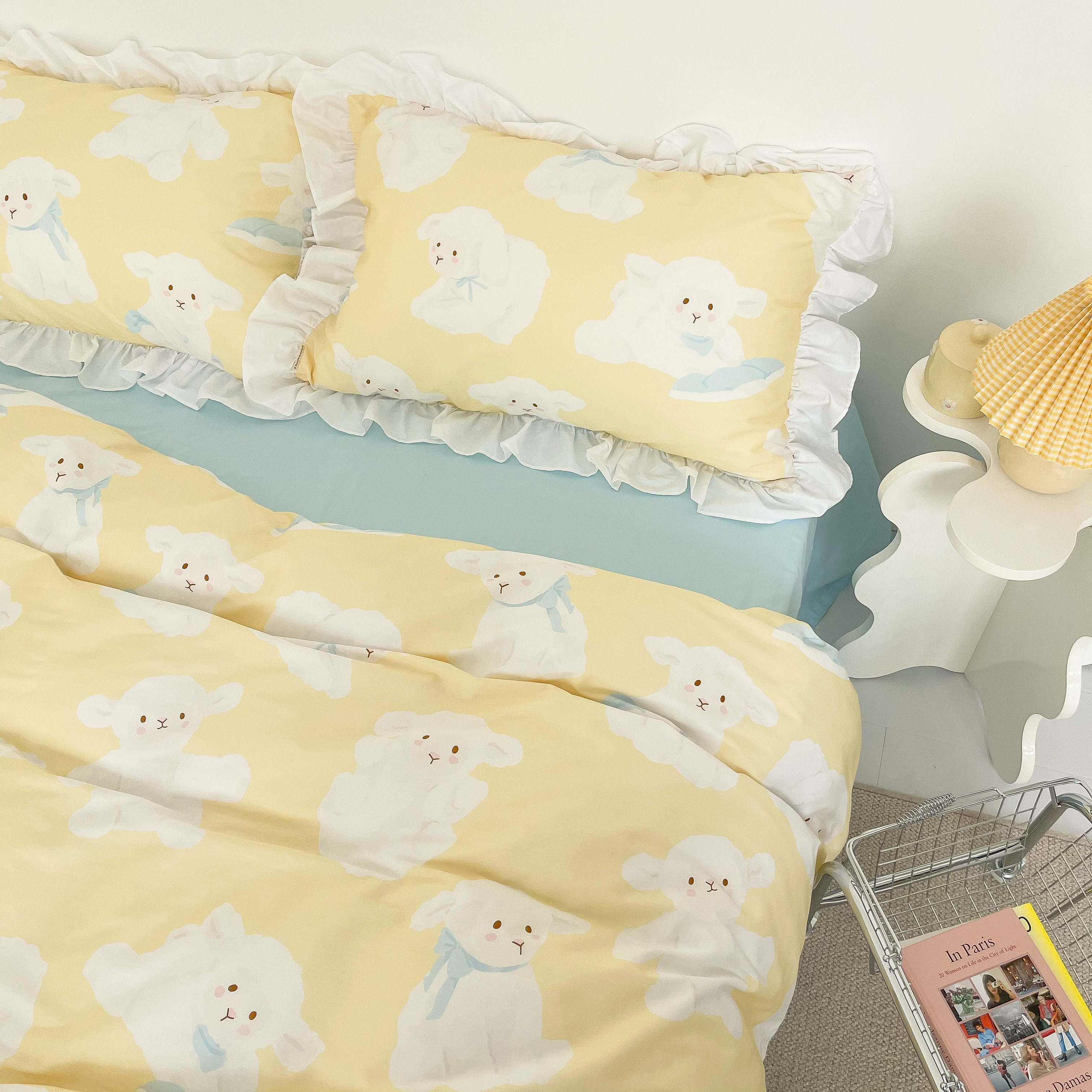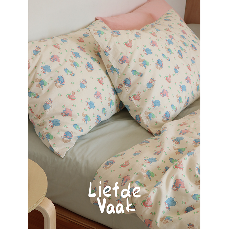 小羊莉娜 可爱原创全棉四件套三件奶黄床单被套 少女温柔lolita