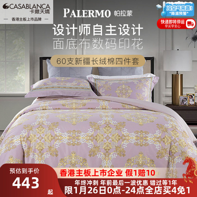 卡撒天娇纯棉全棉四件套欧式床品四件套60支长绒棉贡缎100棉套件