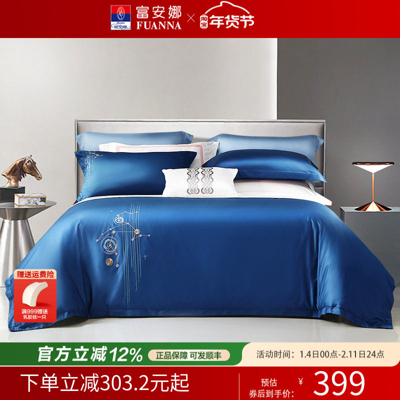 【断码清】富安娜家纺60支长绒棉全棉四件套纯棉床单被套4件套