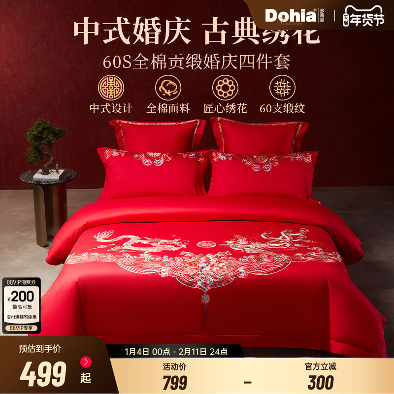 多喜爱60支全棉四件套婚庆结婚喜被床上用品婚嫁六件套床品被套