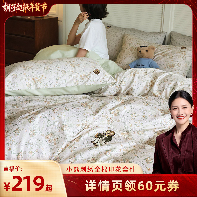 【胡可直播间】TeenieWeenie小熊油画田园风全棉床上四件套