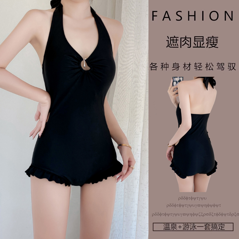 网红款温泉度假黑色连体比基尼高级感显瘦泳衣女款2025年新款爆款
