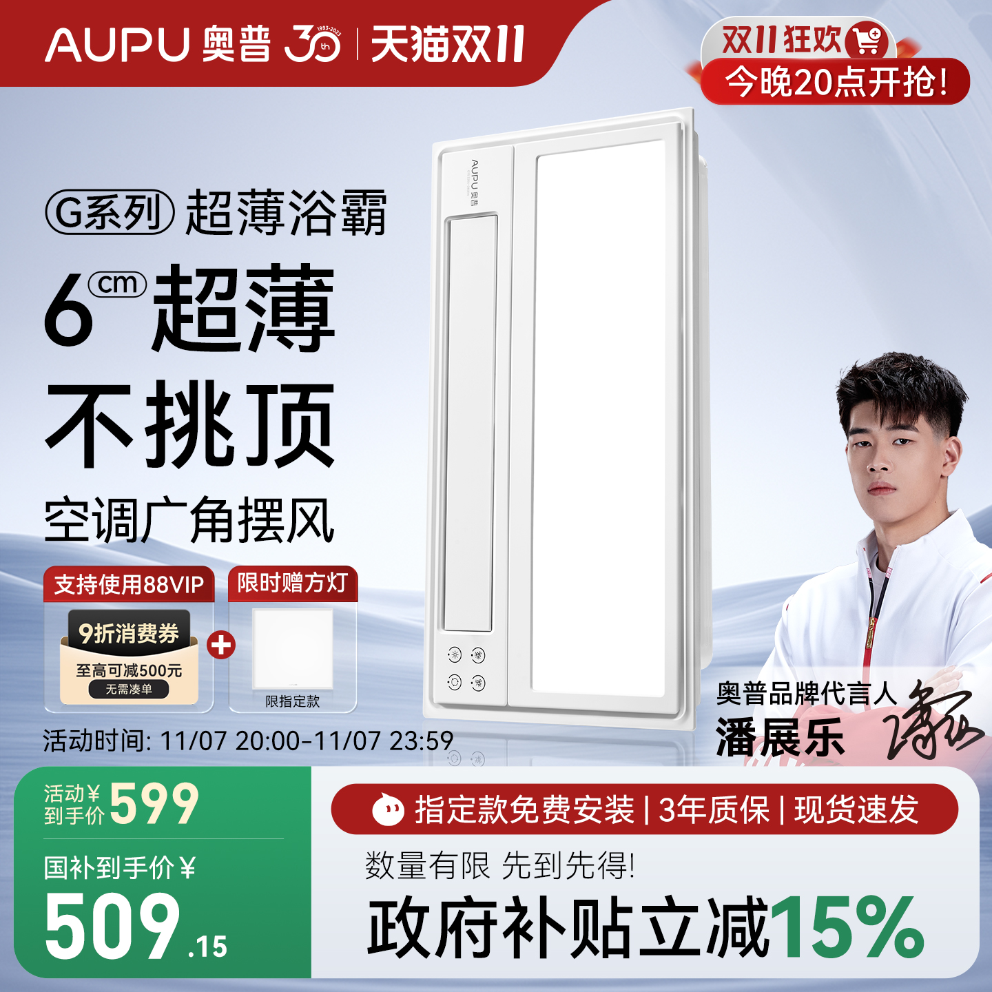 补贴15%奥普风暖浴霸官方旗舰店低层高卫生间照明排气风扇一体G10