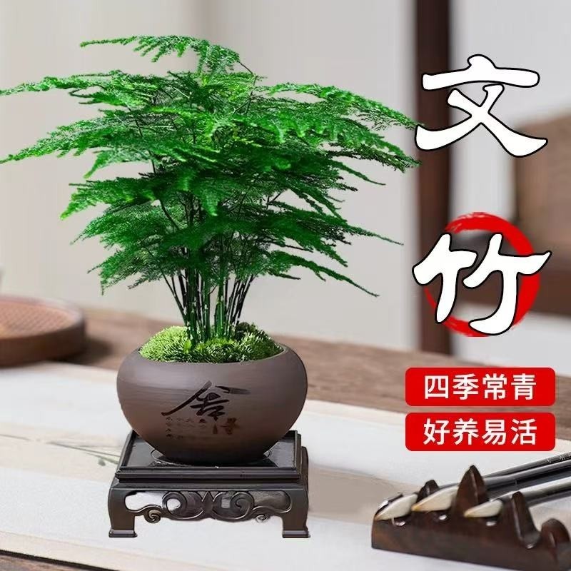 文竹盆栽办公室内桌面绿植适合懒人养的四季常青好养禅意植物盆景