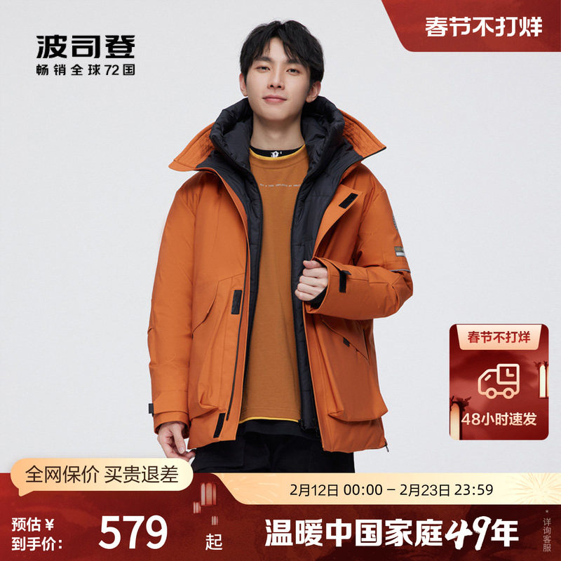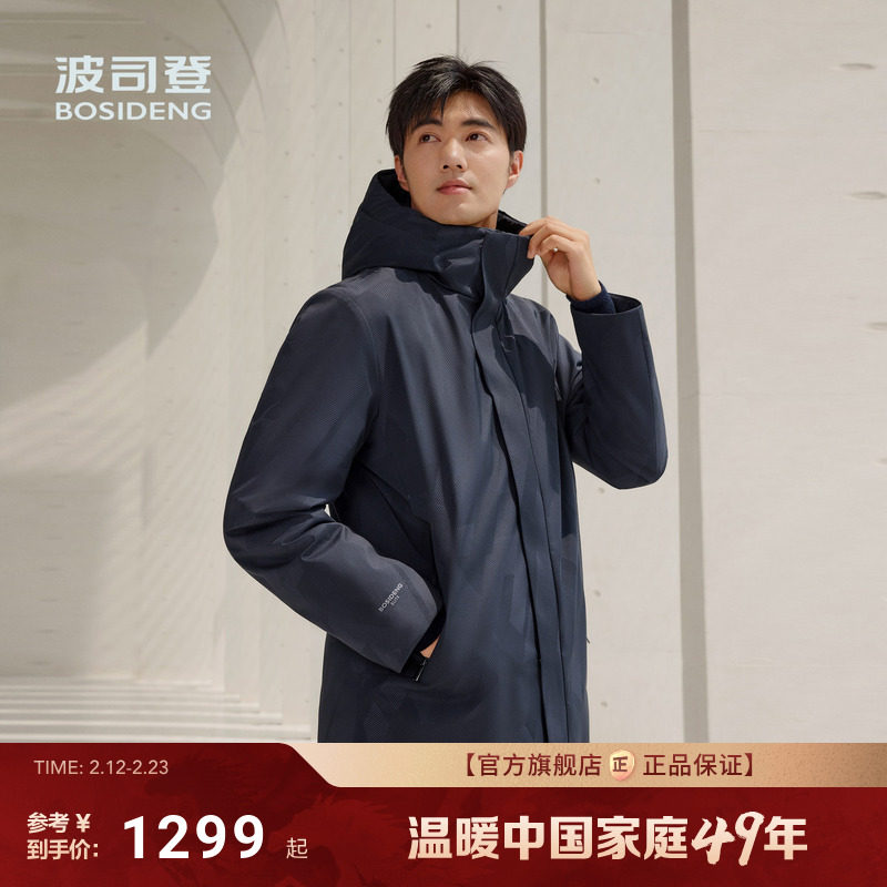 【鹅绒】波司登奥莱男冬季廓形连帽中长款时尚防风加厚羽绒服保暖