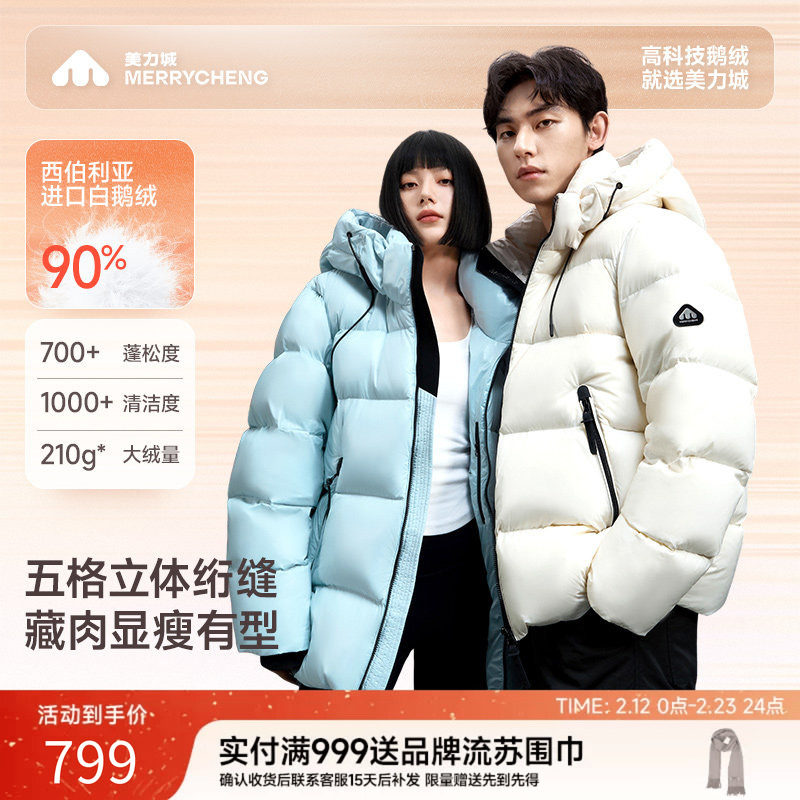 美力城羽绒服男短款冬季新款情侣上衣加厚保暖连帽鹅绒外套女113