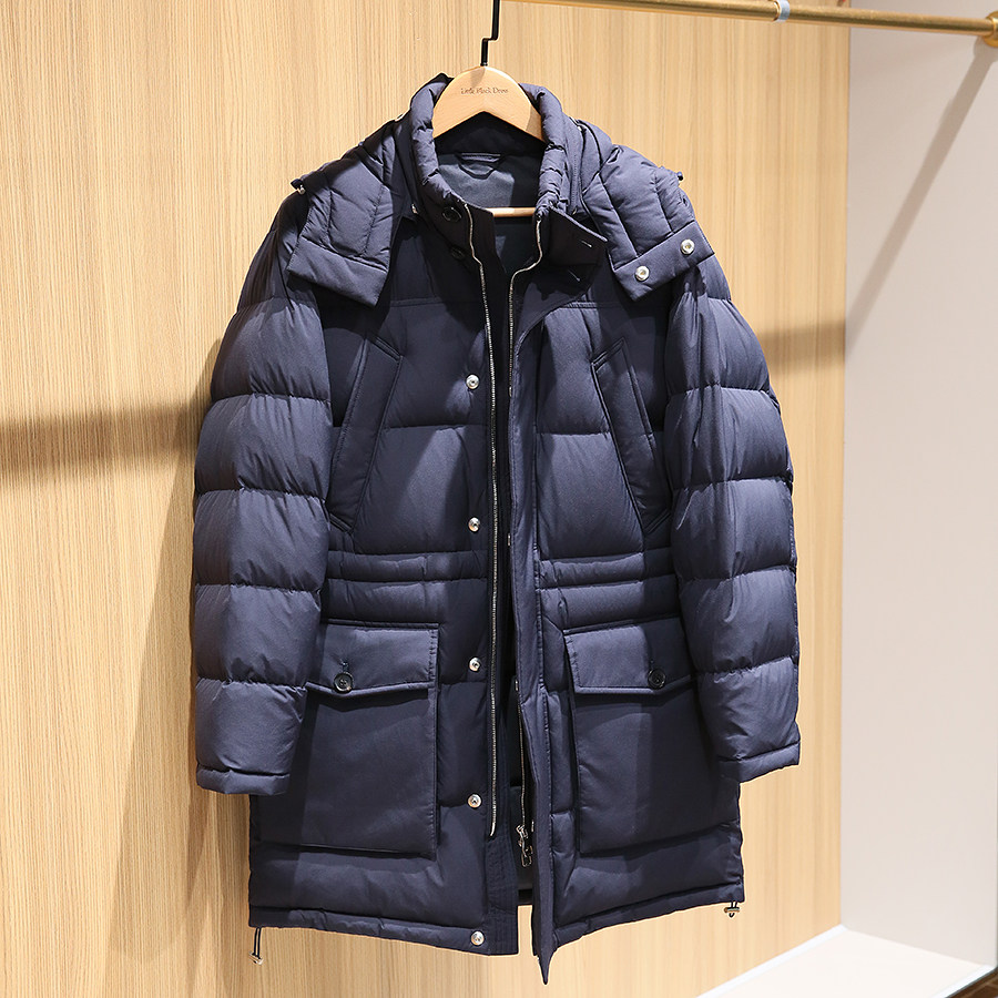 冬季欧洲站轻奢尼龙鹅绒羽绒服男加厚中长款时尚休闲连帽外套修身
