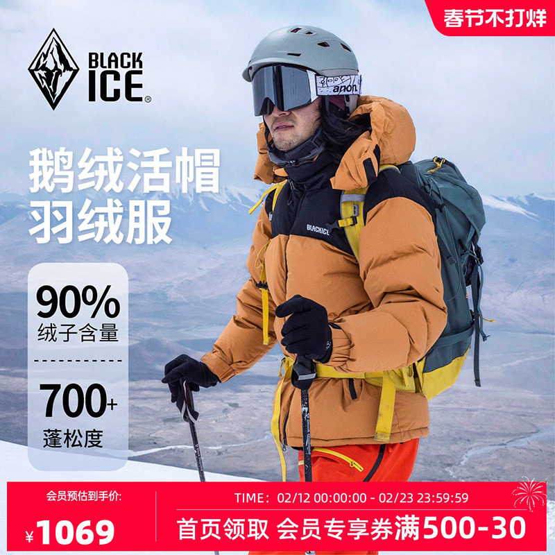 黑冰户外羽绒服男800蓬鹅绒服防风耐磨连帽加厚保暖三防外套8528
