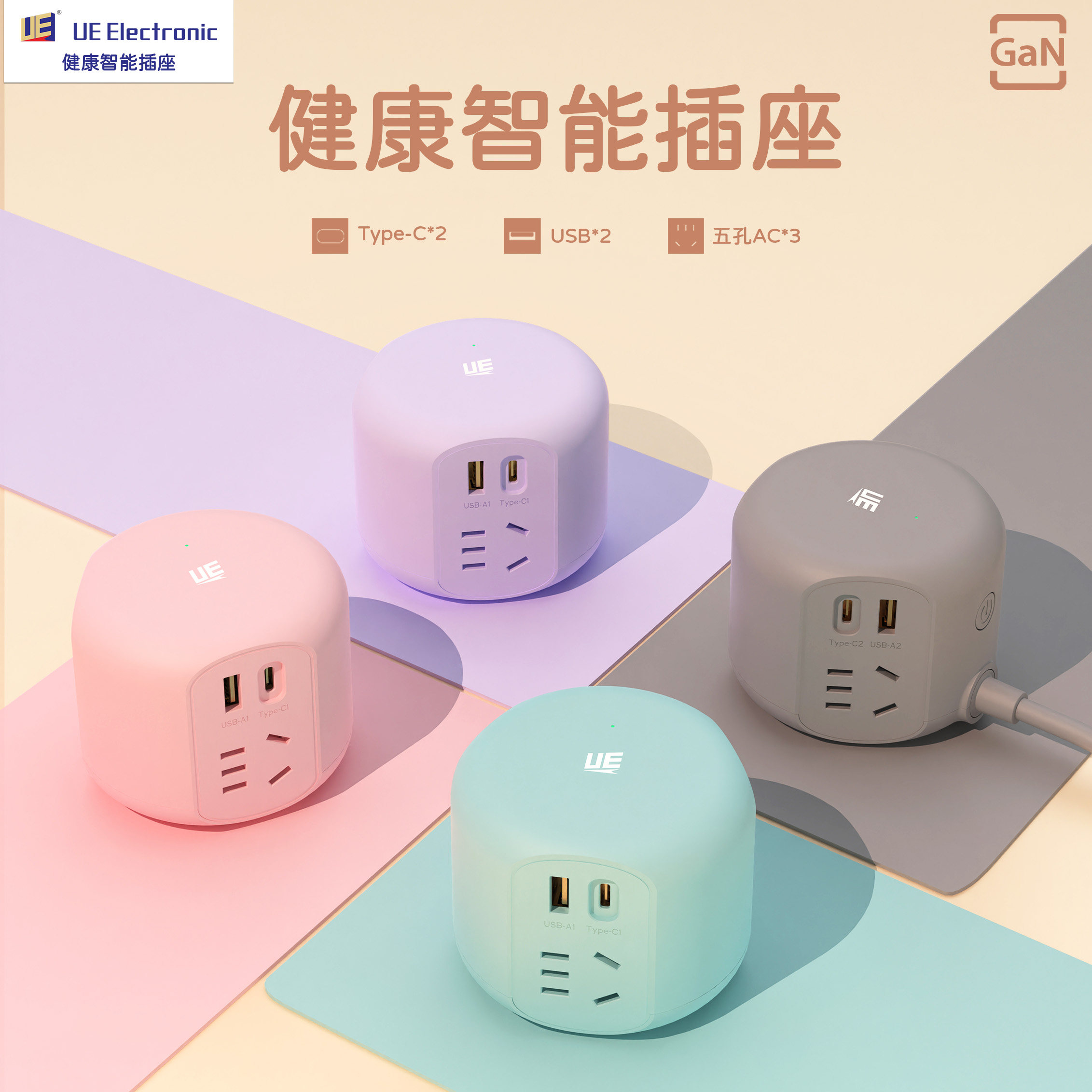 UE智能插座排插氮化镓桌面充电站多口快充Type-c插线板USB充电器