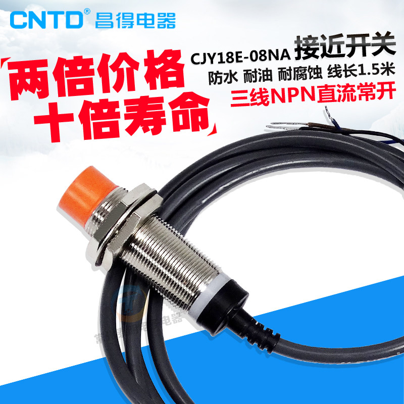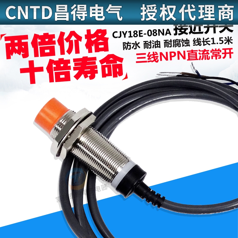 CNTD感应接近开关三线npn常开24v 12V传感控制器CJY18E-08NA ZBX
