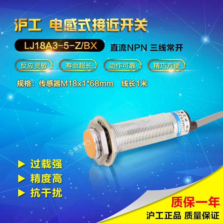 沪工直销接近开关三线NPN常开24V 直流 LJC18A3-5-Z/BX M18电容