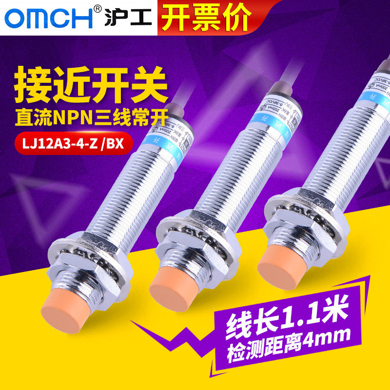 沪工OMCH直流接近开关三线npn常开24v传感LJ12A3-4-Z/BX感应器12V