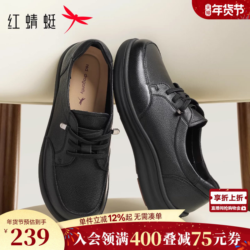 红蜻蜓真皮女鞋 中老年人软底奶奶皮鞋 平底妈妈鞋女软皮老人单鞋