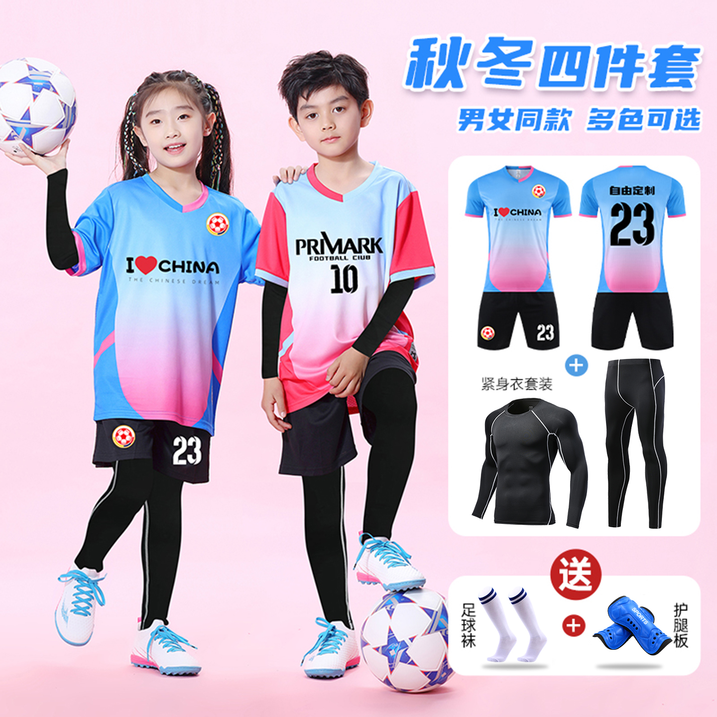 渐变儿童足球队服四件套定制足球服羽毛球服训练服秋冬男女童长袖