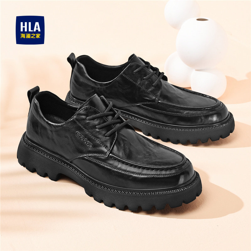 HLA/海澜之家男鞋2025秋冬新款厚底乐福鞋男英伦复古时尚商务皮鞋
