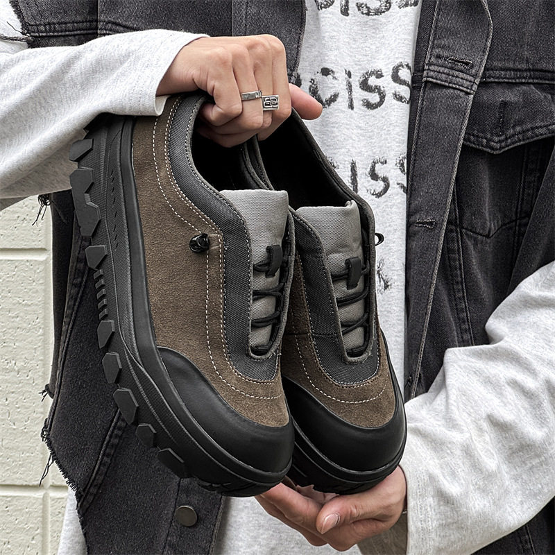 2025新款男士休闲皮鞋厚底增高乐福鞋男英伦风登山鞋一脚蹬懒人鞋