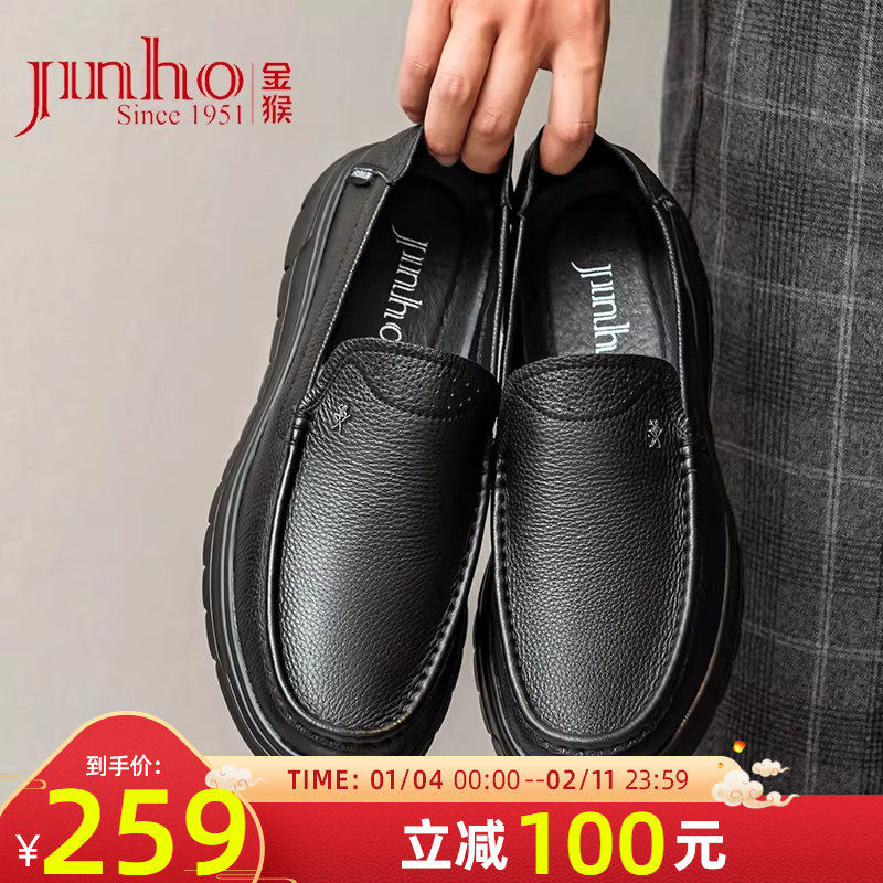 金猴皮鞋男春季驾车鞋套脚牛皮黑色乐福鞋男英伦风男士真皮豆豆鞋